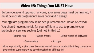 Closing the deals can sound scary, but in this video you will learn exactly what JV partners look for, and why most super affiliates won’t budge.