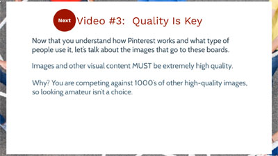 Grab this video course and learn how to generate high converting traffic from Pinterest.