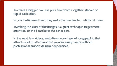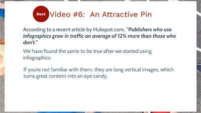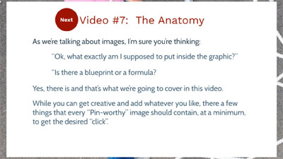 Once you understand the best converting shape in Video #5, you’re going to learn how to apply that to real life. You’re going to learn what tools you need to create a very attractive pin that will turn ugly and boring content into eye-catching pin worthy content.