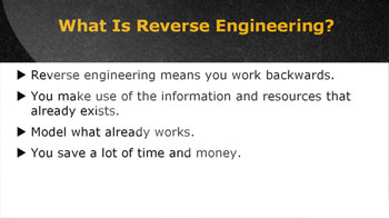 - What is reverse engineering and how do you go about it (...while saving time and money since you don't have to reinvent the wheel.)