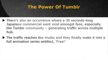 - How to use your creativity to drive traffic on Tumblr (hint - a unique user environment filled with a lot of traffic opportunities.)