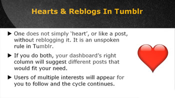 - Why should you learn about 'hearts' and 'reblogs' (hint - discovering the crucial unspoken rules on Tumblr.)