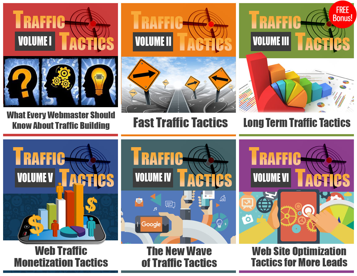 This 6-part volume Traffic Tactics series are a must-have for anyone with a website! Apply these little known tactics for maximum impact and see your web visitor stats hit through the roof, sales records increase, and put a strain on your autoresponder with the hot flow of leads!