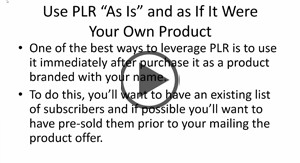One of the biggest problems people face with PLR products is selling it 'as is'. If you're just the same as 1000's of other people out there that are doing the same thing, then your sales will be few and far between.