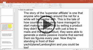 This video will take you through the steps needed to create effective PowerPoint presentations derived from PLR for your own coaching students. Great for explaining concepts and getting across ideas when teaching. |