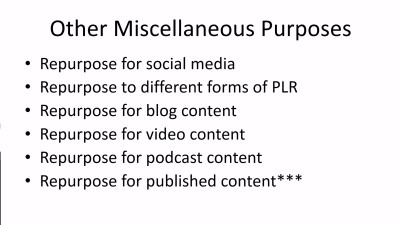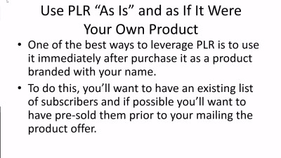 Find out how to use PLR 'as is' with minimal modication to sell or monetize quickly. This technique is great for cash flow and to get some momentum going.