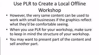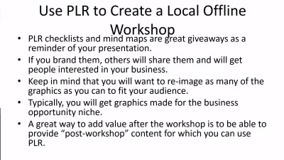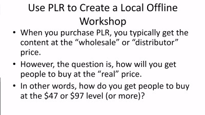 Instantly position yourself as an expert in your niche and use PLR to create offline workshops and presentations. This video will reveal a perfect strategy for setting you up for a high-ticket sale.