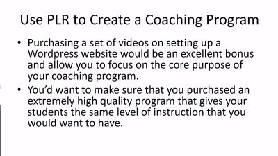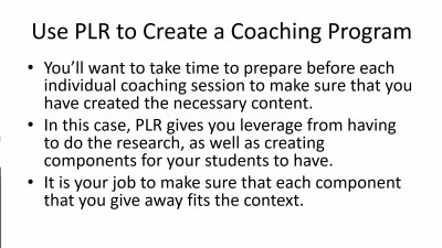 Coaching programs can range from $100 an hour to $50,000 for a weekend event or more. Discover how to combine your teaching skills and PLR to bring tremendous value to the marketplace.