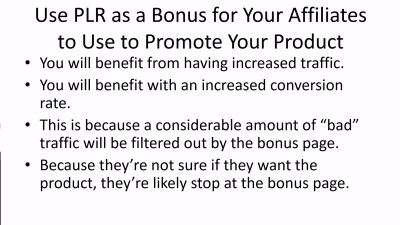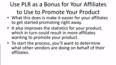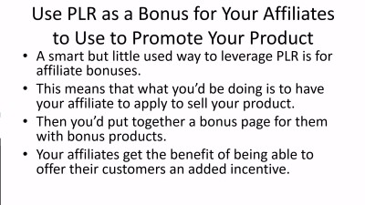 Give your product sales an instant boost with the marketing power of affiliates. In this video you'll discover how to re-position PLR as bonuses that affiliates can offer to their customers.