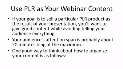 Webinar presentations are ideal for showing off your knowledge, building credibility and offering high-ticket items. Find out how to use PLR to 'fill the gaps' to make your webinar complete.