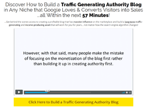 Discover How to Build a Traffic Generating Authority Blog in Any Niche that Google Loves & Converts Visitors into Sales ...all Within the next 57 Minutes! ...Get behind the scenes access to creating a profitable blog that has massive influence on the marketplace and build a long-term traffic-generating and income-producing asset that will work for you for years... not matter how the search engine algorithm changes!
