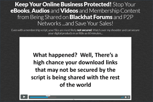Keep Your Online Business Protected! Stop Your eBooks, Audios and Videos and Membership Content from Being Shared on Blackhat Forums and P2P Networks ...and Save Your Sales! Even with a membership script, your files are most likely not secured. Watch over my shoulder and can secure your digital products in as little as 60 minutes... So, the question remains is how do you monitor or know if people are pirating and sharing your digital goods?