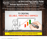 Get Instant Access to 45 Quick and Easy Graphic Design Tutorials and Finally Create Stunning Banner Ads, eBook Covers, YouTube Splash Screens and Facebook Page Graphics Using Photoshop and GIMP Software!... Get the marketing edge you need and create stunning graphics even if you don't have a background in art and design... or have a creatively-dormant brain!