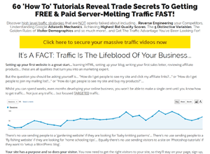 60 'How To' Tutorials Reveal Trade Secrets To Getting FREE & Paid Server-Melting Traffic FAST! Discover high level traffic strategies that are NOT openly talked about including... Reverse Engineering your Competitors, Understanding Google Adwords Mechanics, Achieving Highest Bid Quality Scores, The 5 Distinctive Variables, The Golden Rules of Visitor Demographics and so much more!... and Get The Traffic Advantage You've Been Looking For!