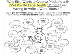 “Who Else Wants to Grab 10 Products with 100% Private Label Rights Without Ever Having to Write a Word Yourself!” ...Use as give-away reports, blog posts, articles, social media content, bonuses, video articles, membership content, webinar training... plus much more! If you’re looking for a set of high quality professionally written products to not only sell as your own, but to build your list, connect with your readers and use as a front-end offers then you're definitely on the right page!