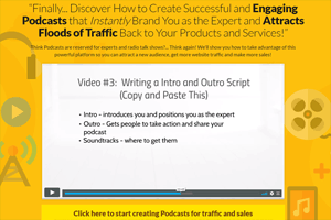 “Finally... Discover How to Create Successful and Engaging Podcasts that Instantly Brand You as the Expert and Attracts Floods of Traffic Back to Your Products and Services!” Think Podcasts are reserved for experts and radio talk shows?... Think again! We'll show you how to take advantage of this powerful platform so you can attract a new audience, get more website traffic and make more sales! Gone are the days where you could just put a product or service up and sell it...