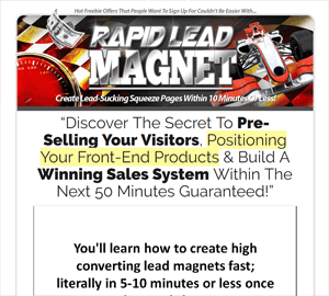 “Discover The Secret To Pre-Selling Your Visitors, Positioning Your Front-End Products & Build A Winning Sales System Within The Next 50 Minutes Guaranteed!” Rapid Lead Magnet is your all-in-one course that will guide you through the steps to creating high converting squeeze pages and landing pages together with a free gift that your subscribers will love you for! Not only will you see a massive surge in subscribers to your database, but you'll also set yourself up for a responsive list that will buy EVERY PRODUCT you have to offer!