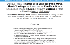 Discover How to Setup Your Squeeze Page, OTOs, Thank You Page, Autoresponder Emails, Affiliate Resources, Product Links, Payment Buttons & More within the Next 47 Minutes! 16-Part Step-by-Step Course Reveals Trade Secrets to Setting Up Your First Sales Funnel so You Can Get Traffic, Build Your List, Make Sales, Recruit Affiliates, Maximize Revenue and More!