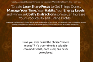 “Finally... a Breakthrough System Shows You How to Create Laser Sharp Focus to Get Things Done... Manage Your Time, Your Habits, Your Energy Levels and Minimize Costly Distractions so You Can Increase Your Productivity and Online Profits!” Do your days feel unfocused?... Do you feel like projects take forever to do and never get completed?... Watch this video to see how to solve this problem once and for all... so you can become UNSTOPPABLE in your personal and business life...