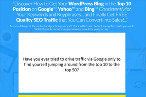 “Discover How to Get Your WordPress Blog in the Top 10 Position on Google™, Yahoo™ and Bing™ Consistently for Your Keywords and Keyphrases... and Finally Get FREE Quality SEO Traffic that You Can Convert into Sales!...” Are you dishing out the content and practicing every SEO trick in the book... but not seeing the results you want? Watch this video as we show you where you could be going wrong...