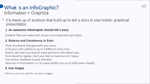 Module 2 - Anatomy of Successful InfoGraphicsIn this particular video, you will learn first and foremost what an infographic is, what it’s used for, and the important key elements that are must-have’s for an engaging and value adding InfoGraphic.