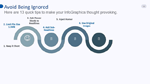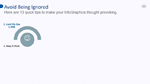 Module 4 - Strategies to Build Curiosity: Making Infographics “Thought-Provoking”Now that you know what style you’ll use and what type of InfoGraphic you’ll apply to relate to your target audience, it’s time to inject strategies to help pique your audience’s interest. In this particular video, you will learn 13 powerful techniques to make your InfoGraphics thought invoking.