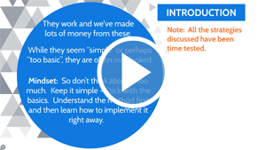 You’re going to get a quick introduction to the video course itself so you know exactly what to expect. Plus, we will talk about the things that you will need before you get started. While some of these methods may seem “simple” or perhaps “too basic”, they are often overlooked. In fact, while everyone is searching for the latest and greatest “strategy” - your competitors are making money.