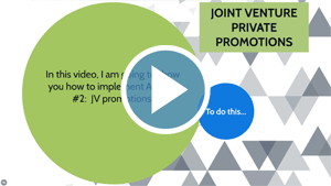 In this video, I am going to show you how to implement JV private promotions. As noted in Lesson 3, these work well, but it does require that you spend a little more time setting these up.